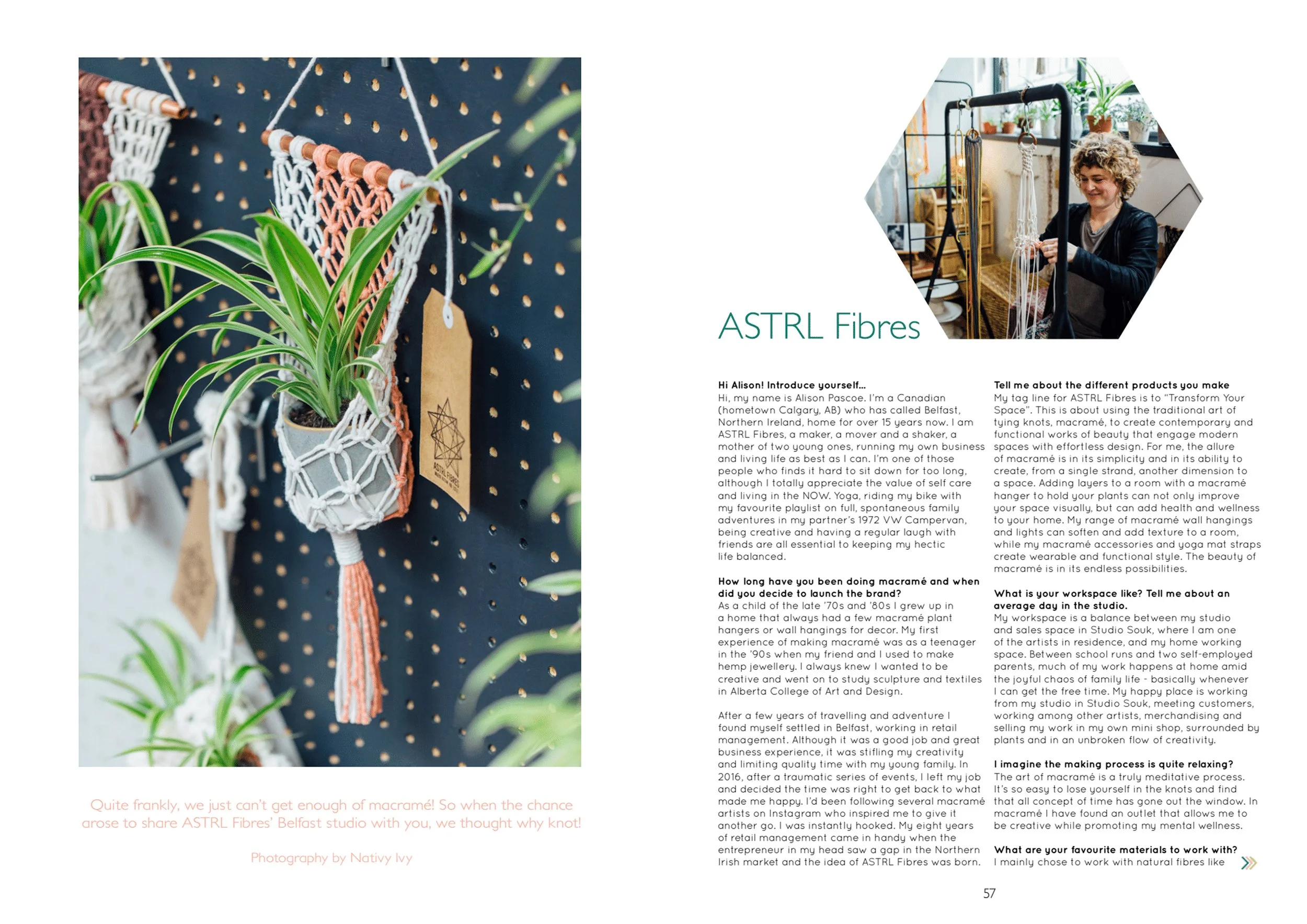 I started Native Ivy just over 7 years ago with a passion to meet local makers, creatives and artists who have a passion for doing something they loved. I have thoroughly enjoyed capturing and telling their stories through creative imagery.