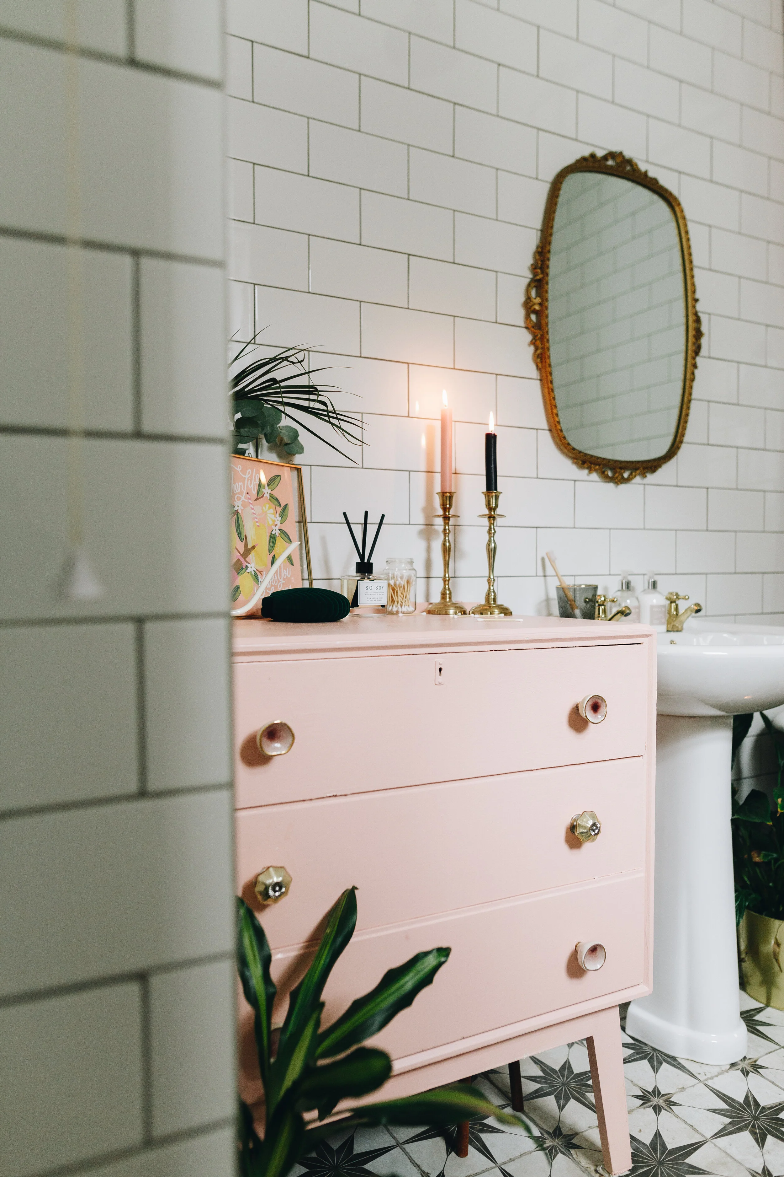Laura’s bathroom is a 1920’s dream! They have saved some really lovely original features while putting their own stamp on it. The pink decor with the greenery from the plants is a perfect combination.